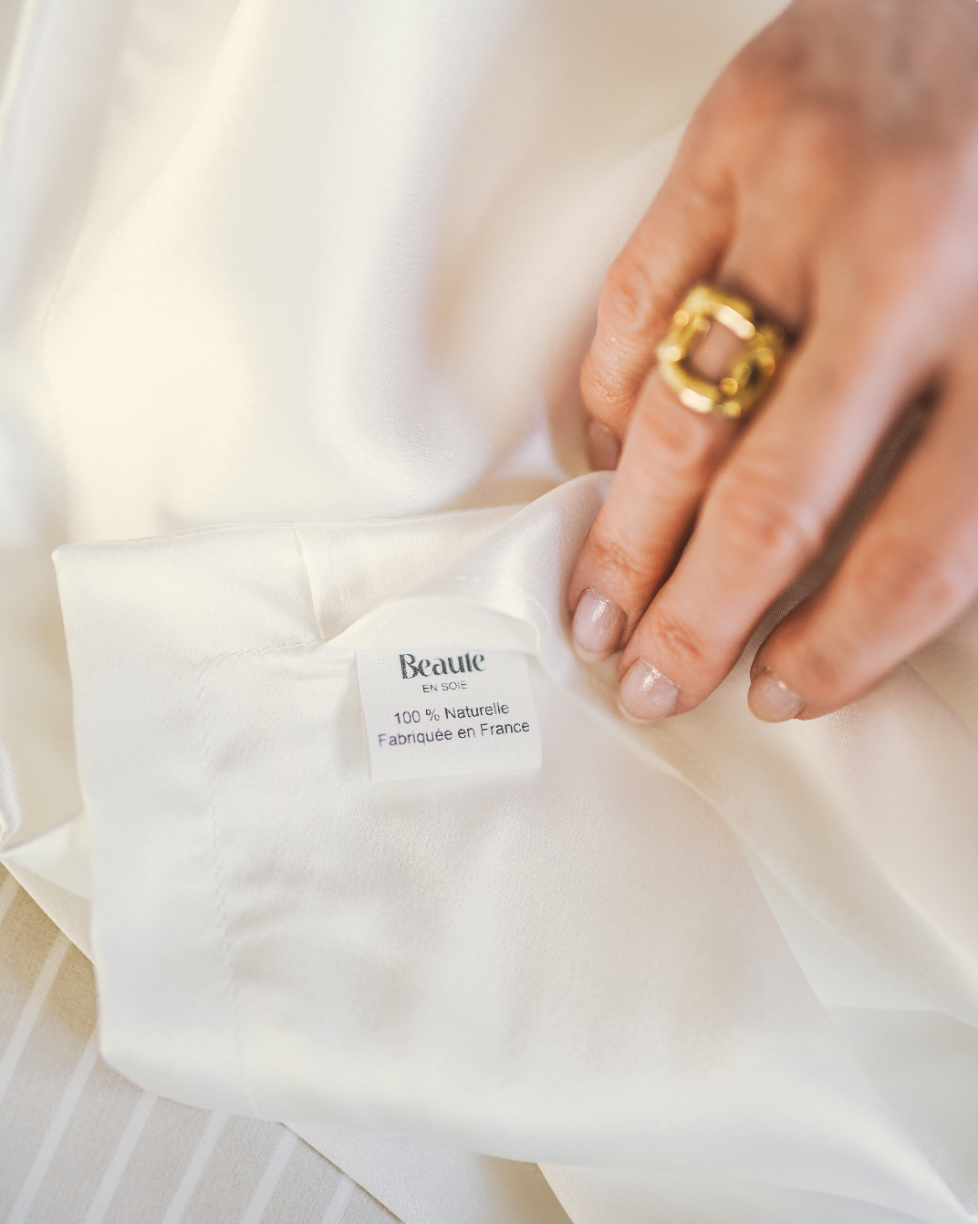 Nous nous engageons également à la durabilité. Nos taies d'oreiller en soie sont fabriquées en France avec une soie non traitée et sans teinture chimique, contribuant ainsi à préserver l'environnement tout en offrant des produits de qualité.